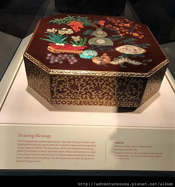 去年參觀了北京的紫禁城, 但人潮恐怖, 只好隨意看看就落荒而逃, 今天能欣賞一些珍貴古物非常開心。Freer Gallery of Art 跟北京故宮合作, 精挑細選了多件紫禁城珍藏的生活用品, 第一次在中國以外的地方展出。