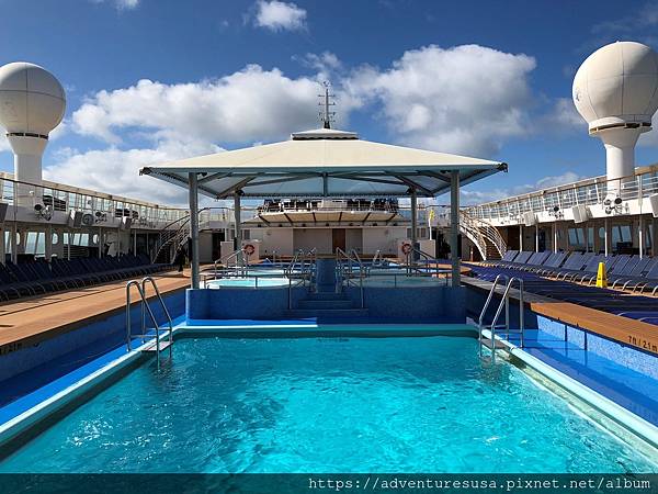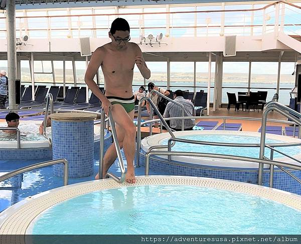 熱水池 hot tub 是郵輪上絕對不能少的設施, 沒太陽曬就來泡熱水。
