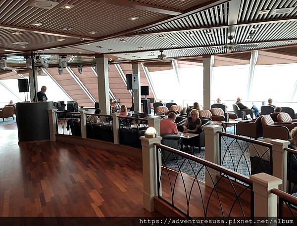 12 樓船頭的風帆酒吧 Spinnaker Lounge 是阿甘無聊的時候愛來的地方, 帶本書來讀, 或是呆望著落地窗外景色, 看郵輪乘風破浪。