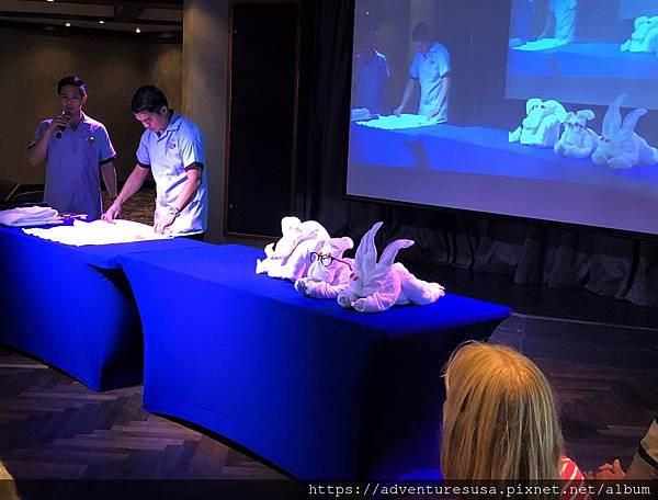 Bliss Lounge 晚上辦舞會, 白天則提供其他活動。例如: 客房清潔人員示範動物毛巾製作