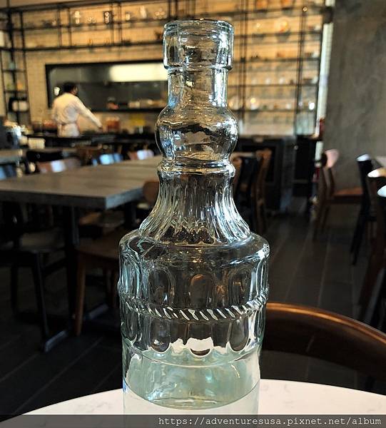 服務生先上白開水。這漂亮的水瓶是寮國來的吧, 真討喜。