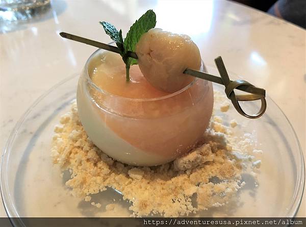 點心時間! 荔枝奶酪, 好吃但是偏甜。迎合美國人的口味吧