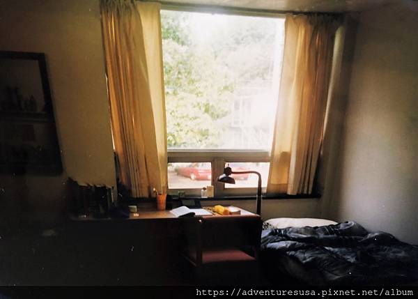 裡面都是小套房, 設備老舊簡陋, 浴室與隔壁共用, 優點有兩個: 步行上學, 租金超級便宜。碩士班第一年, 阿甘常坐在這窗前念書寫報告和... 發呆。