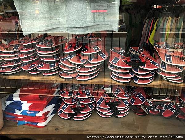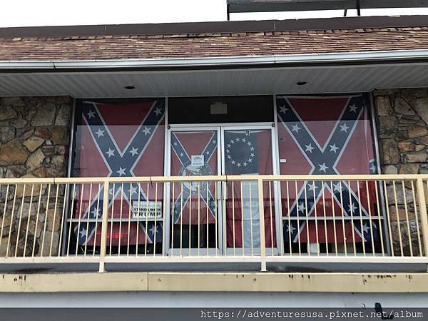 邦聯旗 Confederate Flag 是美國南北戰爭期間南方的旗幟, 由於南方為了蓄黑奴的自由跟北方槓上, 這面旗幟也成為種族歧視的象徵。直至今日, 許多南方人仍把 Confederate Flag 掛在家門前。