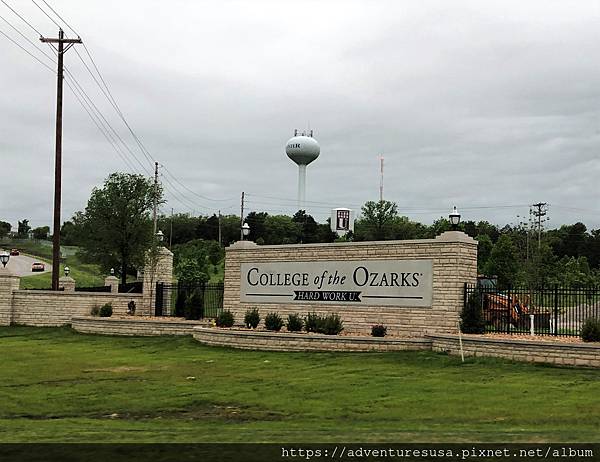 Branson 還有一個名產: Ozarks 學院。College of the Ozarks 是一所基督教學院, 學生以校園工讀換取學費全免。但是該校以保守出名, 曾被選為美國最敵視 LGBT 的學校。學生幾乎都是白人也備受批評。2018 年, 沒沒無聞的 College of the Ozarks 受到全國矚目。校方以 Nike 聲援黑人運動員為由, 全面抵制 Nike 產品, 引起譁然。