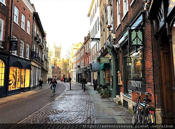 Trinity Street 窄窄的街道, 一棟接一棟百年建築, 標準英倫風。兩邊滿是酒吧 餐廳和其他店面, 隨時迎接著劍橋大學師生光臨。