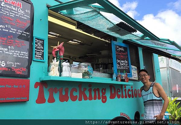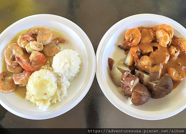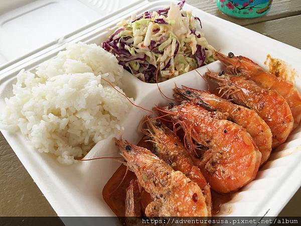 你知道來夏威夷除了吃 Luau 的烤乳豬外和午餐肉飯糰, 還有甚麼必吃? 就是蝦子。路邊常看到賣蝦的小吃攤或餐車。