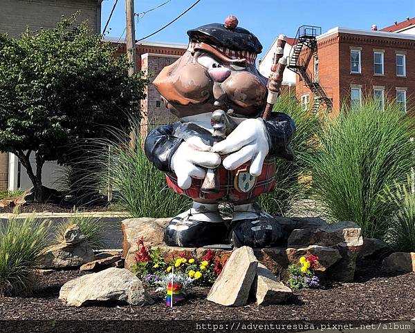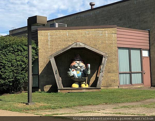 不過, 幾乎每個街角都有驚喜喔! Phil 以特殊造型歡迎來客, 自從 2004 年第一尊開始, 陸續不斷增加, 現在一共有32 個造型各異的 Phil。這一個礦工 Phil 叫做 The Heritage Hog, 由當地一家傢俱店出資, 紀念礦工出身的傢俱店創始人。