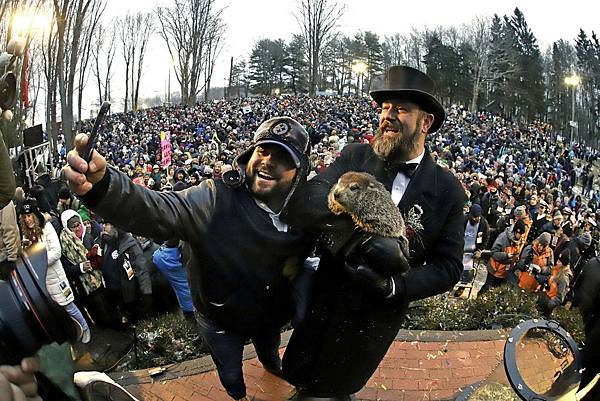 (網路照片) 北美洲的德裔移民有個傳統迷信, 二月二日這一天土撥鼠出洞時, 如果能看見自己的影子(無雲晴天), 表示冬天還有六個星期。如果土撥鼠看不到自己的影子 (陰天), 代表春天會提早來到。多年來以賓州 Punxsutawney 的預測最為知名, 是當地盛大活動, 許多記者來現場報導。