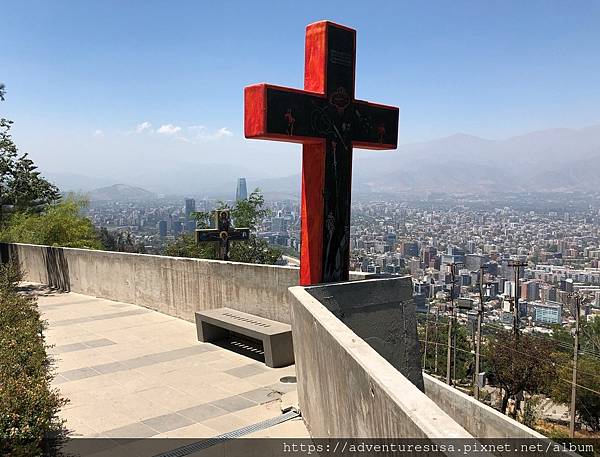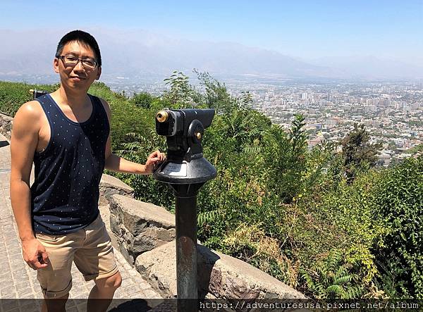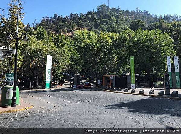今天前往智利首府聖地牙哥知名景點 San Cristóbal Hill, 從山頂俯瞰美麗市容。這裡山腳下入口。