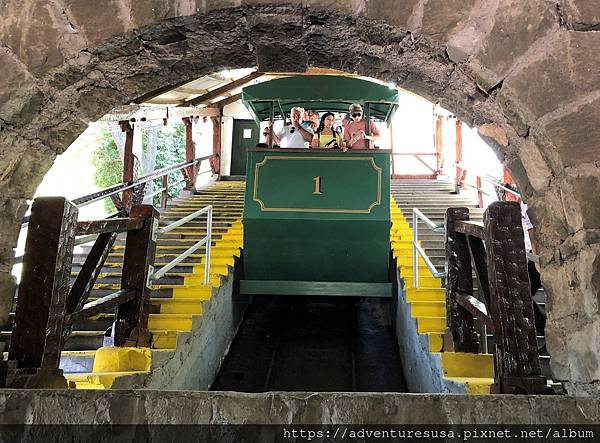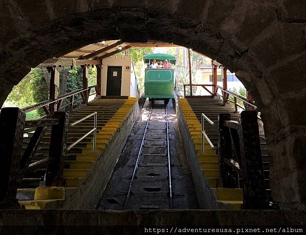 這座 funicular 纜索鐵路登山系統是由義大利工程師建造, 1925 年完工, 快要一百歲了。