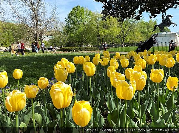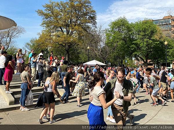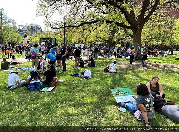 附近另一座公園裡, 人們享受著明媚春光。一個禮拜前還冷颼颼的, 白天氣溫不到 15 度。