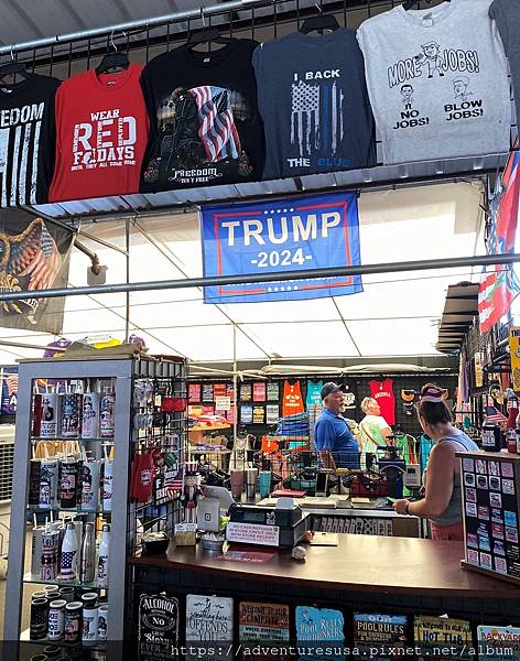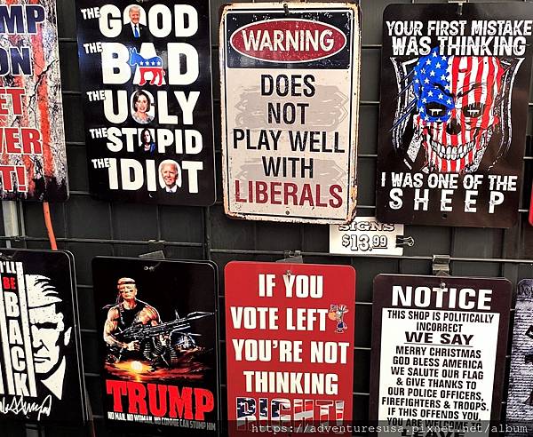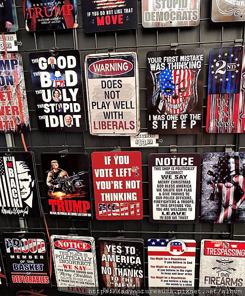 美國保守派/共和黨基本盤的水準在哪裡, 從隨便一個市集裡可以看得一清二楚。這些鄉巴佬夢想著川普在 2024 年重回白宮, 然而川普前兩次大選的票數都輸給對手, 前幾天還被 FBI 查獲違法窩藏機密文件, 沒坐牢就不錯嚕!