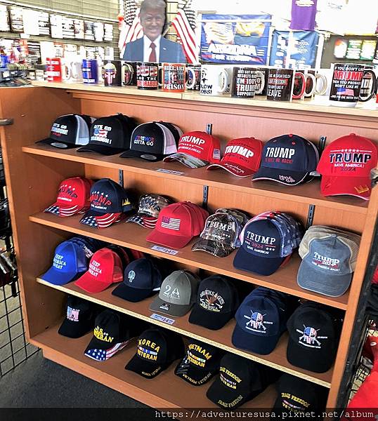 各種顏色與設計的川普帽供川粉挑選。