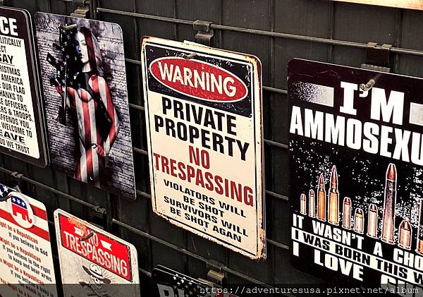 左邊裸露的女子手持衝鋒槍, 右邊寫著:「我是槍彈戀, 生來如此, 沒有選擇。我熱愛槍!」 把殺人武器用性愛包裝, 變態至極。美國遲遲無法通過槍彈管制法令, 就因為保守派/共和黨堅持不要, 認為火力強大的武器應該自由流通讓所有人都輕易取得。