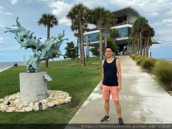 阿甘後方原本是一棟七零年代建成的倒三角形建築, 內有飲食與觀景設施。2015 年被拆除, 嶄新的碼頭與公園 St Pete Pier 於 2020 年七月剪綵開放。