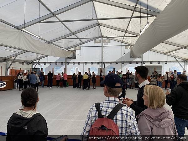 乘客排隊 check-in。流程非常迅速, 可說是十三次郵輪之旅以來最有效率的 check-in。