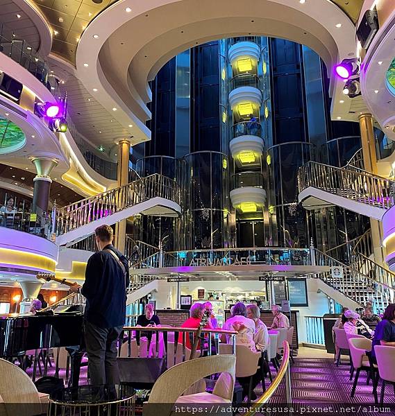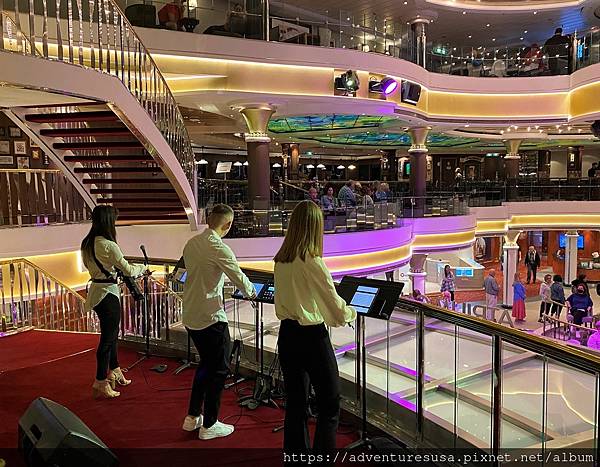 除了大劇院裡的表演, 船上其他地方也時時有音樂放送。這個男生用吉他伴唱流行歌曲。
