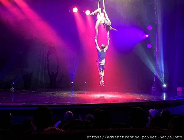 特技表演已經是各艘郵輪上必備節目, 通常大受歡迎。特技人員幾乎都來自俄羅斯等東歐國度。