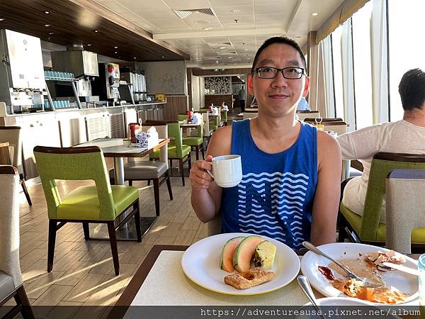 郵輪上的各種生態與活動早已非常熟悉。包肥餐廳每天總要報到數次。