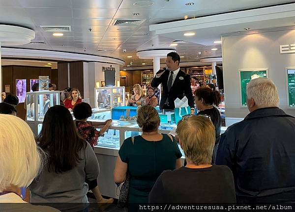 沒事逛逛船上的精品店。每艘郵輪的精品店都會用抽獎的名義吸引人氣, 每次參加卻沒中獎過。反正阿甘從不花錢買精品, 沒任何損失。