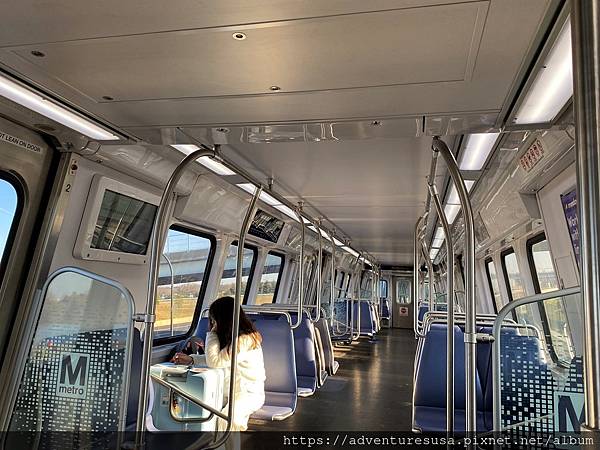 從進入捷運站、等車、搭車、換線、再等車、上車、抵達杜勒斯國際機場站..... 整趟旅程一個半小時。單趟六塊美金。