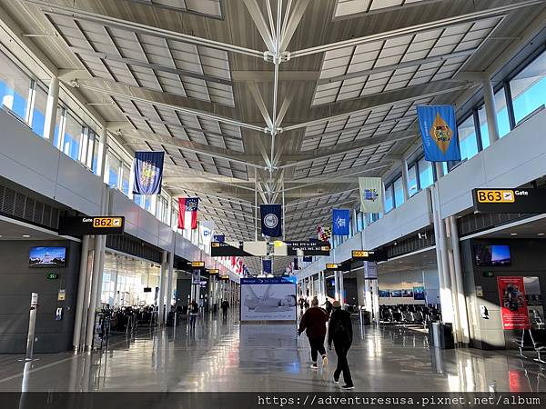 進到入境大廳。阿甘是來搭飛機的, 不是坐捷運好玩而已。