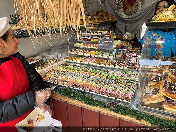 這個甜點攤位也提供試吃, 好像在逛迪化街買年貨喔!