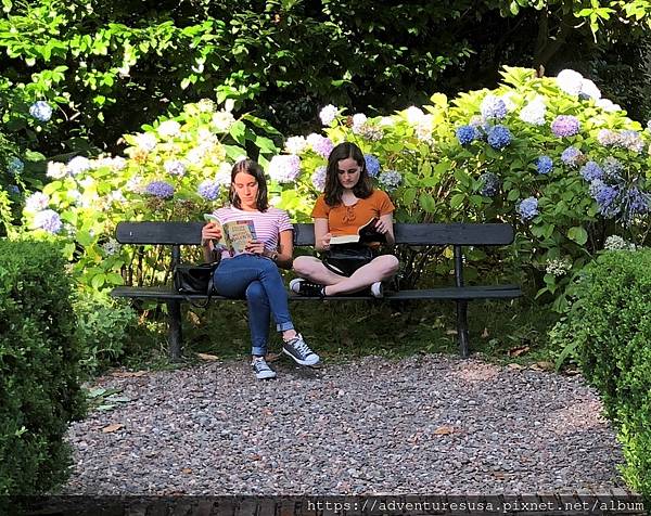 花園中閱讀的少女。這個年代看見年輕人念書總是有股莫名感動, 基本上都是盯著手機看一大堆沒營養的影片。