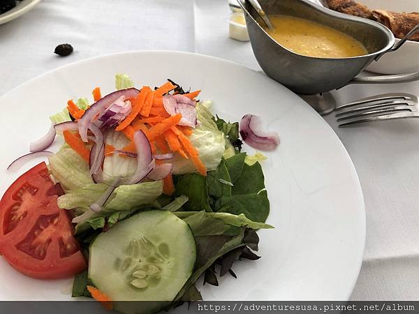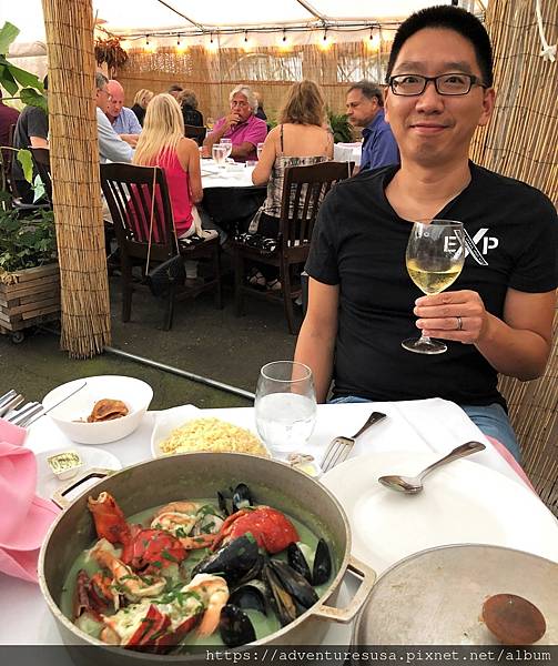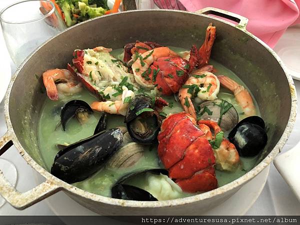 鮮美濃郁的海鮮鍋不到五十塊美金, 加上麵包和沙拉, 可以吃很飽, 超級划算。