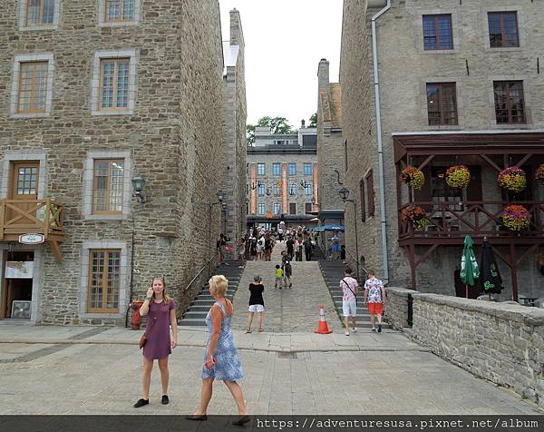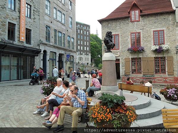 轉角處來到知名廣場 Place Royale。據稱此處是法國外交家與探險家 Samuel de Champlain 落腳之地, 在這兒建立法國移民在北美的第一個據點。斷頸樓梯前面那條街就是以他命名。