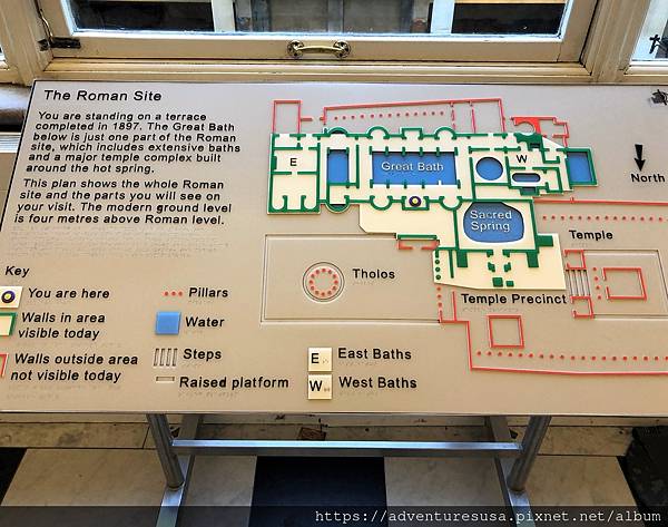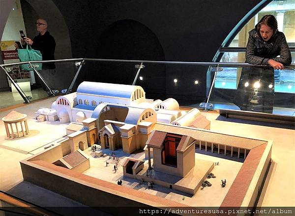 除了溫泉池, 並展示挖掘出土的羅馬時代遺跡。大多是十九世紀後期才被發現。