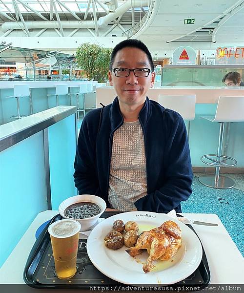 半隻烤雞+馬鈴薯+豆子湯+啤酒, 只要八歐元含稅, 不想回美國了啦!