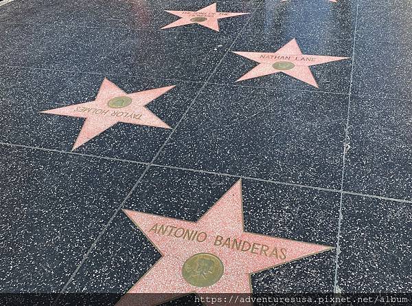 一共十五個街區, 約兩公里長。然而觀光客最常流連與駐足的只包括其中幾個街區。上圖有安東尼奧班德拉斯和納森連恩的星星。
