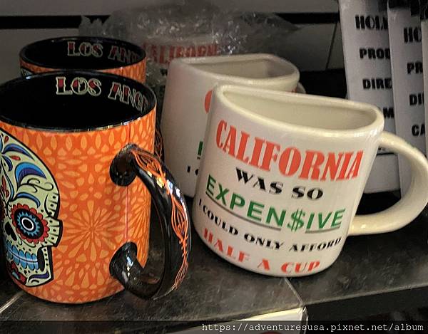 這個馬克杯上寫著: 加州好貴, 我只買得起半個杯子。還真的只有一半, 幽默感滿分, 實用性零分。