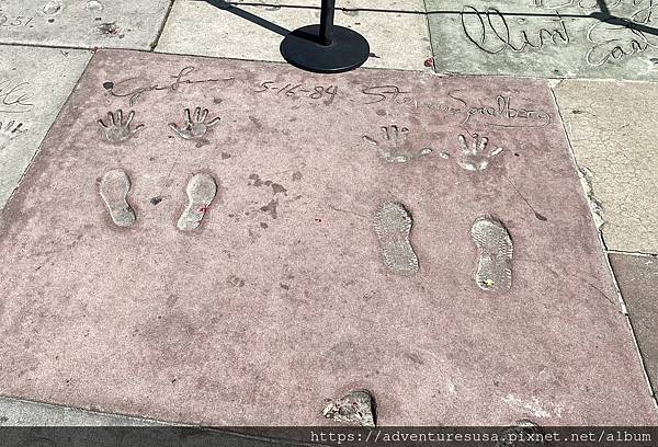 中國戲院大門前滿是大明星手印和腳印。都是大咖中的大咖, 像是史蒂芬史匹柏。