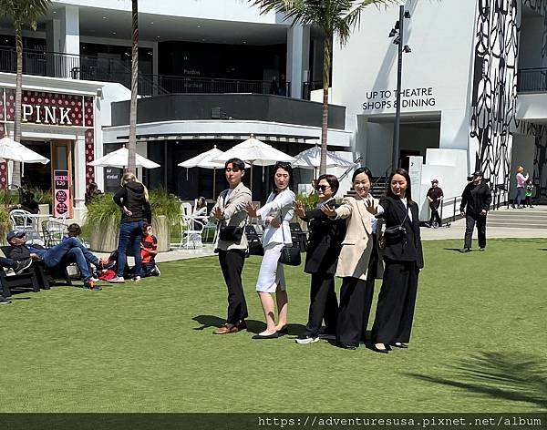 購物中心正中央的草坪有一群韓國人在拍照。絕對百分之百韓國人。