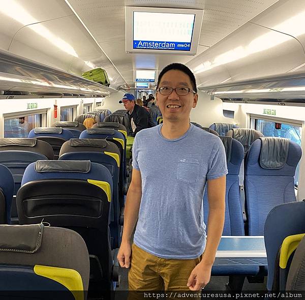 到達終點站之前已經沒有其他停靠站了, 車上一半乘客也已經下車, 商務車廂裡九成是空位, 阿甘乾脆直接坐下來享受。不過沒幾分鐘就到阿姆斯特丹了。