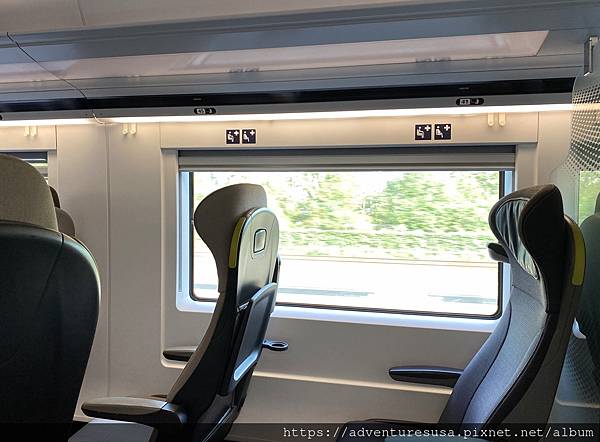 跟上次搭的歐洲之星車廂相比, 座椅顏色和質感都不同, 煥然一新。