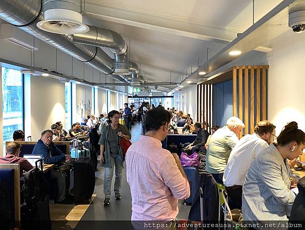 Eurostar 的專屬候車室裡好多人在等著前往倫敦。