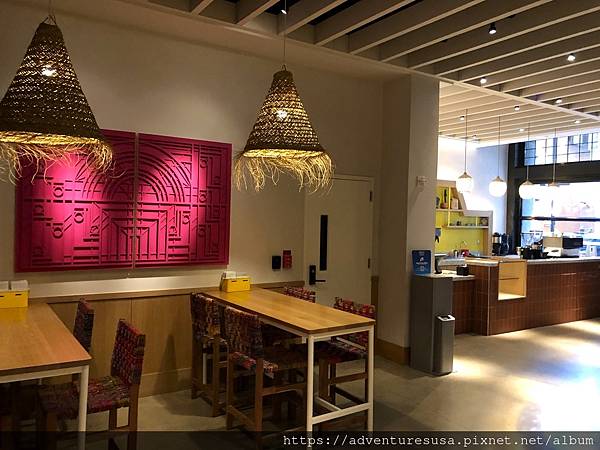 費城的 Hilton Motto 大門一進來是咖啡廳, 賣咖啡和糕點, 附有幾個桌位。