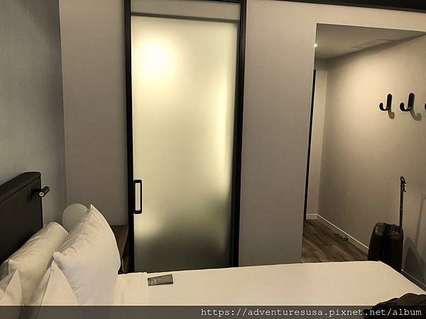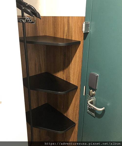 沒有衣櫃, 一進房間這個角落有幾個衣架讓你掛衣服。