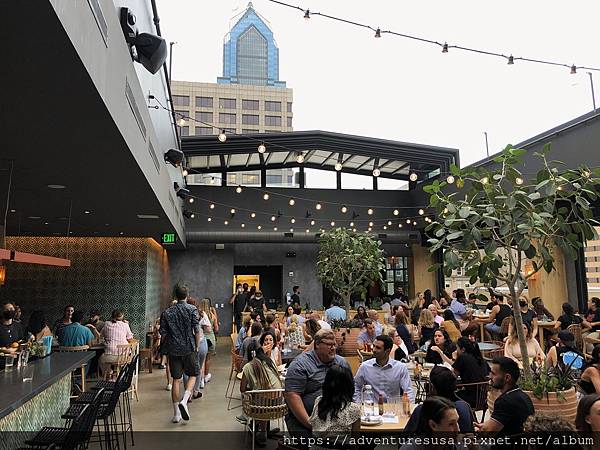 樓頂有一個蠻寬闊的酒吧。不管旅館再小, 酒吧不能少, 因為美國人愛喝酒, 喝酒是重要的社交時間。
