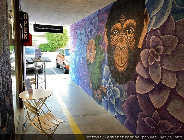 走廊上的牆壁也很藝術。猴子賞花??