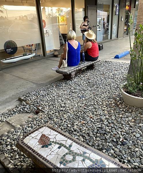 可以坐在板凳上邊吃披薩邊聽歌