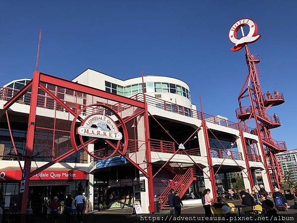 這一區叫做 Lonsdale Quay。原本是一座船塢, 1977 年開航的 Seabus 溫哥華-北溫哥華線讓此處成為渡輪站。