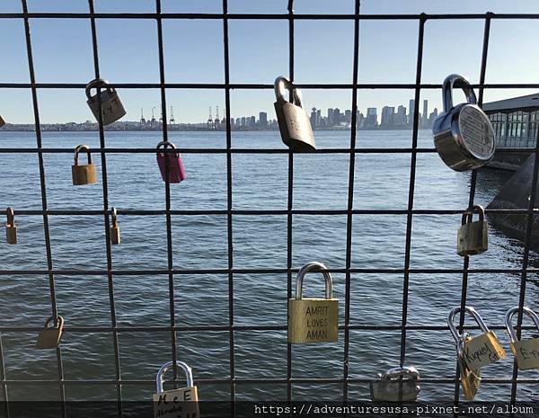 搭乘渡輪 SeaBus 從溫哥華抵達北溫哥華後, 一下船便是一個漂亮的水岸園區。賞景約會的好地點。