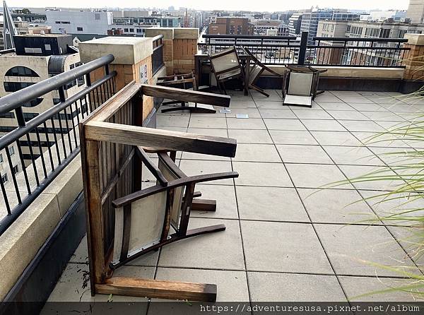 阿甘在這棟大樓住了快十五年, 從沒遇過這種事。這些桌子很重, 一個人根本搬不動, 風可以大到把桌椅掀翻撞牆損毀, 太不可思議。