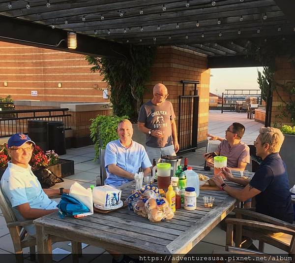 樓頂的烤肉和用餐空間最教人雀躍 , 阿甘已經在這裡辦過數不清的趴。當然代價不低, 每個月管理費已漲到八百塊 (包含健身房和會議室)。