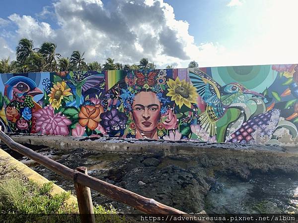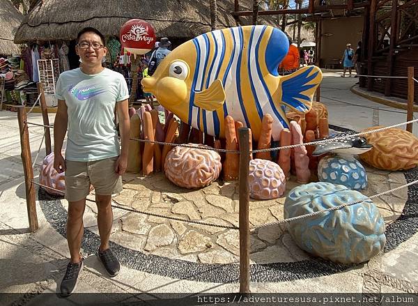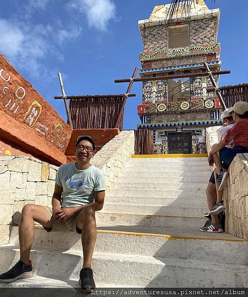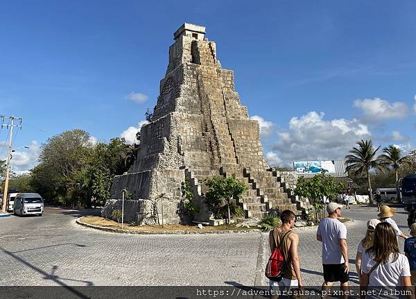 再走幾步看到一座不知是真是假的馬雅遺跡。馬雅文明活躍於西元前一千五百年直到十六世紀左右, 涵蓋範圍在中美洲包括墨西哥東南部。我們十多年前就在兩百多公里以外的 Tulum 參觀過馬雅遺跡。